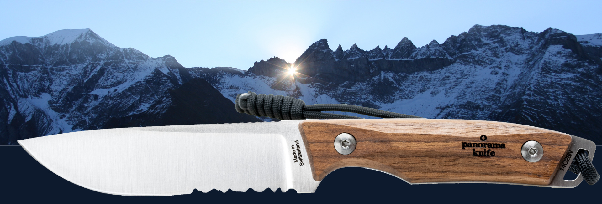 Seine robuste und rostfreie Klinge aus Sandvik Steel (14C26N, Härte HRC 60) schneidet bei Bedarf Seile und Schnüre, trennt mühelos Äste ab, erledigt feine Schnitzarbeiten oder unterstützt Sie beim Herstellen von Zunder für ein Feuer. Dezent in die Klinge eingearbeitet sind die Berge Glärnisch, Tödi, Rautispitz und Tschingelhörner mit dem Martinsloch!